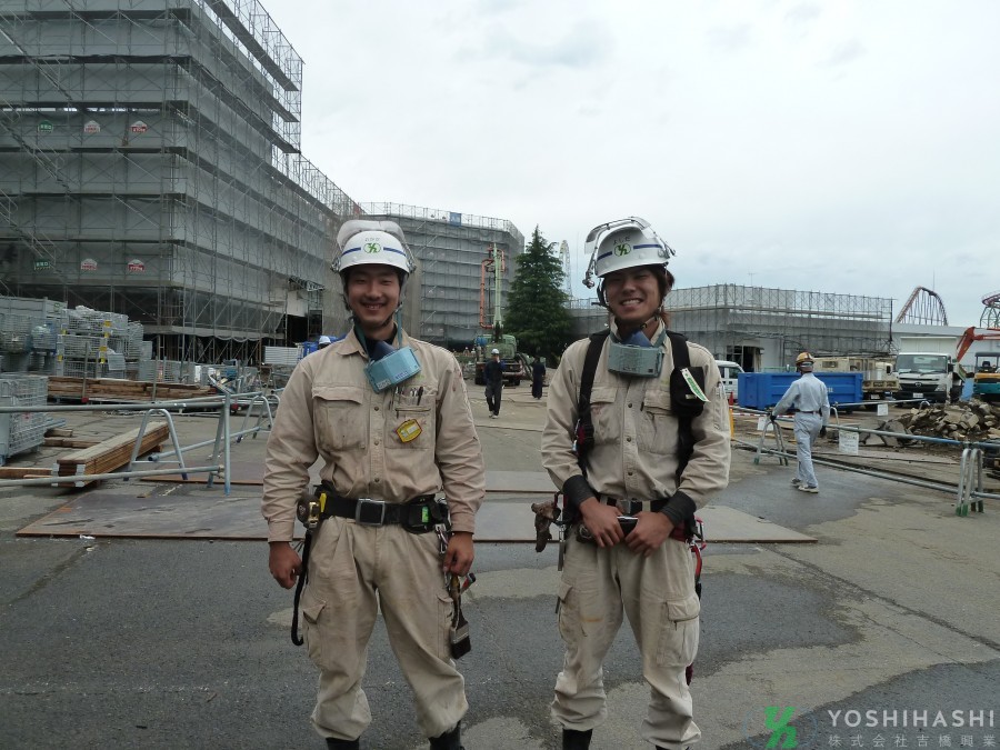新入社員の岡田達哉君は、都立蒲田高校 普通科を卒業して入社しました。現在は、昨年入社の吉田謙太先輩と一緒に京井職長の指導の下、多摩の遊園地の整備工事の現場に配属されています。当社には協力会社の社員さんを含め、年齢が近い若い社員がたくさんいます。一つ上の先輩はよき相談相手であり、ライバルでもあります。岡田君は、野球を長く続けていたので、礼儀正しく先輩たちにもかわいがってもらえることでしょう。頑張ってください。