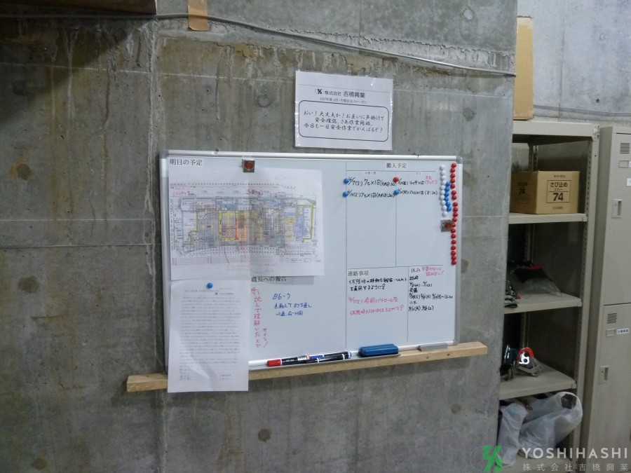 「月間安全スローガン」ホームページの巻頭でも毎月更新して紹介していますが、 職長は現場詰所に必ず張り出して職人さんたちに周知することになっています。 お題目ではなく息を吹き込むには、みんなの意識が大切です。