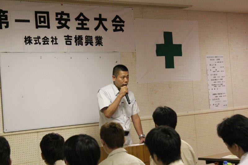 当社工事部長の河野部長からのご挨拶、安全担当からの安全講話、教育責任者の吉橋 昌からあらためて会社の施工ルール等について説明を頂きました。